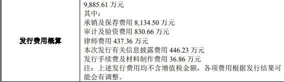公司本次上市发行费用为9885.61万元,其中保荐机构光大证券获得承销保荐费8134.50万元。