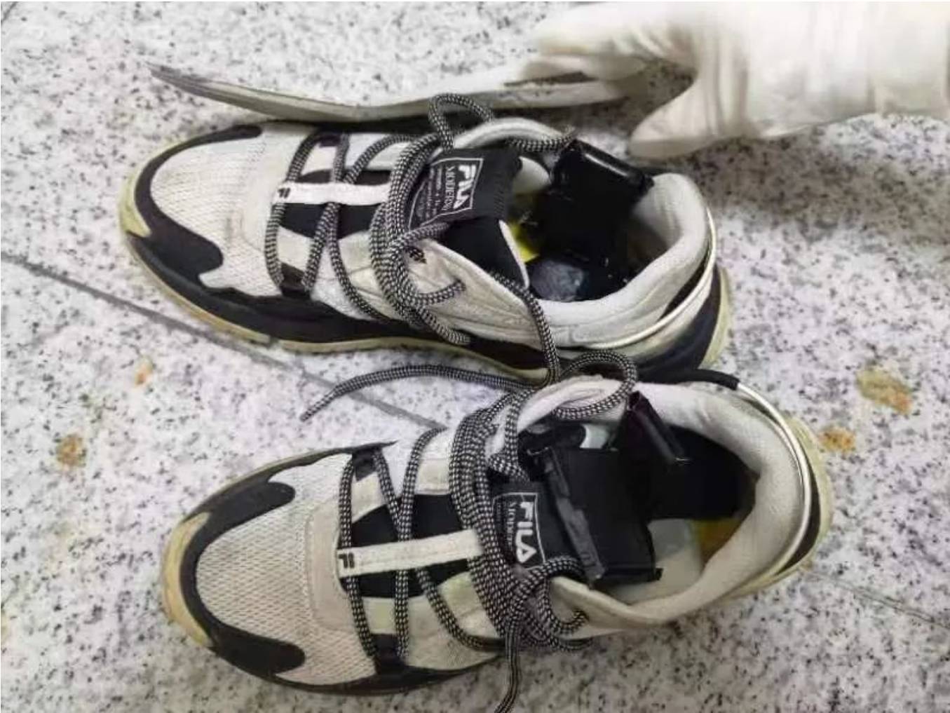 经检查,关员在其电单车车筐发现一个以头盔掩盖的黑色包装袋。当事人称袋内装的是充电器,关员打开袋子发现疑似黄金碎块14件。经进一步检查,发现当事人所穿鞋子内各藏匿疑似黄金碎块3件,经清点,合计20件,总重4999.54克。