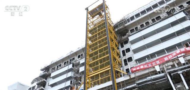 现在邮轮建造中还用上了许多如AR扫描、流程机器人这样的“黑科技”,创新的建造方式也提升了整体作业效率。船体外侧,一台从底部贯穿至顶部的醒目黄色升降装置即将投入使用。有了它的帮助,很多房间舱室就可以提前在外部的工厂完成批量生产。